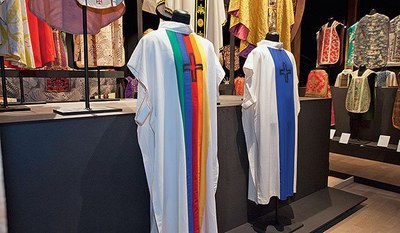 « L'Église a veillé avec un zèle particulier à ce que le matériel sacré contribuât de façon digne et belle à l'éclat du culte, tout en admettant, soit dans les matériaux, soit dans les formes, soit dans la décoration, les changements introduits au cours des âges par les progrès de la technique. » (Sacrosanctum Concilium §122.)