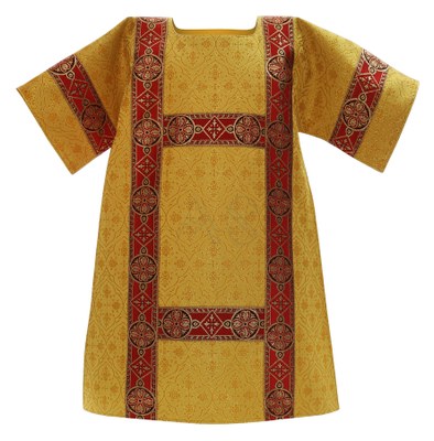 La dalmatique est un vêtement de chœur en forme de croix avec des manches courtes, elle se décline selon les couleurs du temps liturgique. Elle est portée par le diacre à la messe, aux processions et aux vêpres ou en Espagne par de simples acolytes ou enfants de chœur lors des processions solennelles.