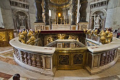 La tombe de l’apôtre – surmontée de l’autel et du baldaquin du Bernin - constitue le cœur de la basilique Vaticane et des fouilles menées à l’époque moderne ont confirmé l’authenticité des traditions concernant l’ensevelissement de Pierre en ce lieu après son martyre.