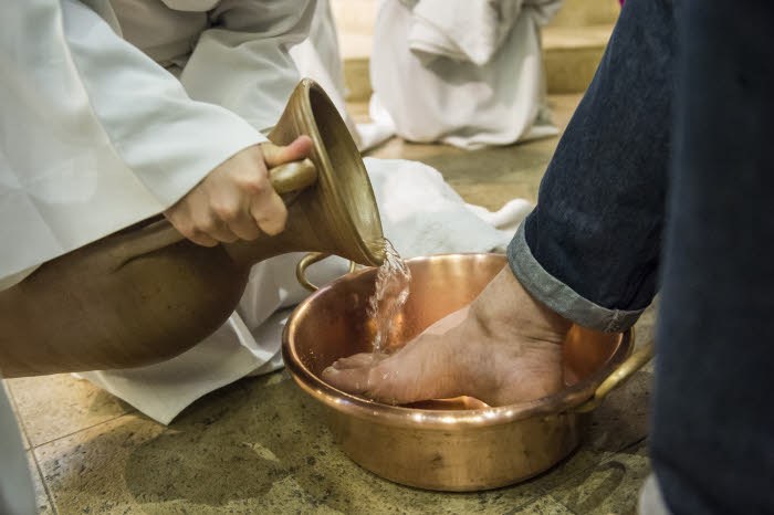 Lavement des pieds durant la célébration de la messe du Jeudi saint