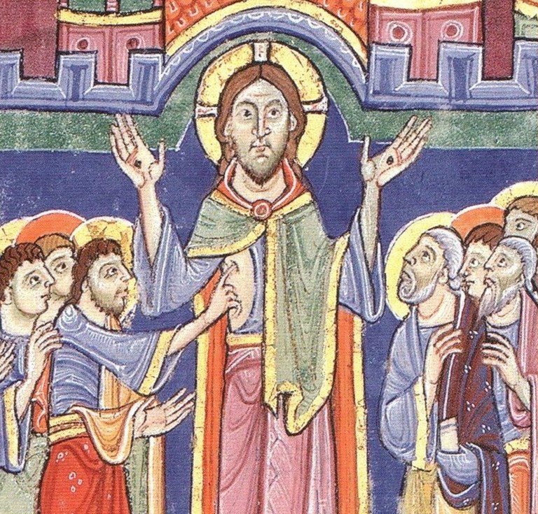 Thomas l'incrédule, miniature du XIIe s. (extrait)