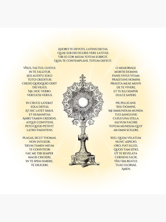 Denis Sureau résume le caractère de cette poésie chrétienne : L’Adoro te ne fait pas partie de l'Office du Très Saint-Sacrement. On a pu souligner la différence de ton entre cette poésie liturgique et les compositions de l'office, ici plus simple et pénétrant, là plus doctrinal et solennel.