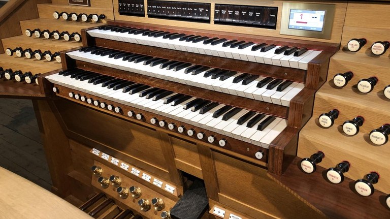 - On estimera hautement, dans l'Église latine, l'orgue à tuyaux comme l'instrument traditionnel dont le son peut ajouter un éclat admirable aux cérémonies de l'Église et élever puissamment les âmes vers Dieu et le ciel. (SC 120)