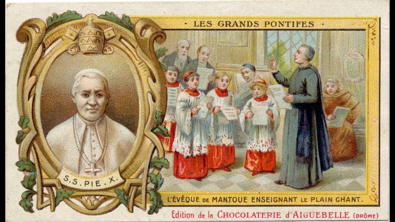 L’antique chant grégorien traditionnel devra donc être largement rétabli dans les fonctions du culte, tous devant tenir pour certain qu’un office religieux ne perd rien de sa solennité quand il n’est accompagné d’aucune autre musique que de celle-là.